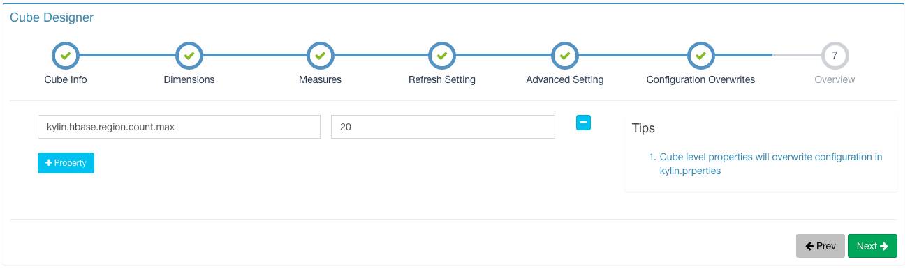 UI上提供了一个重要更新,即允许用户在Cube级别进行自定义配置,以覆盖kylin.properties中的全局配置。如在cube中定义kylin.hbase.region.count.max可以设置该cube在hbase中region切分的最大数量。