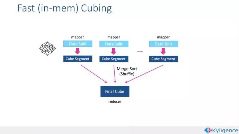 除此之外,1.5.x还引入了Fast cubing算法,利用Mapper端计算先完成大部分聚合,再将聚合后的结果交给Reducer,从而降低对网络瓶颈的压力。对500多个Cube任务的实验显示,引入Fast cubing后,总体的Cube构建任务提速1.5倍。