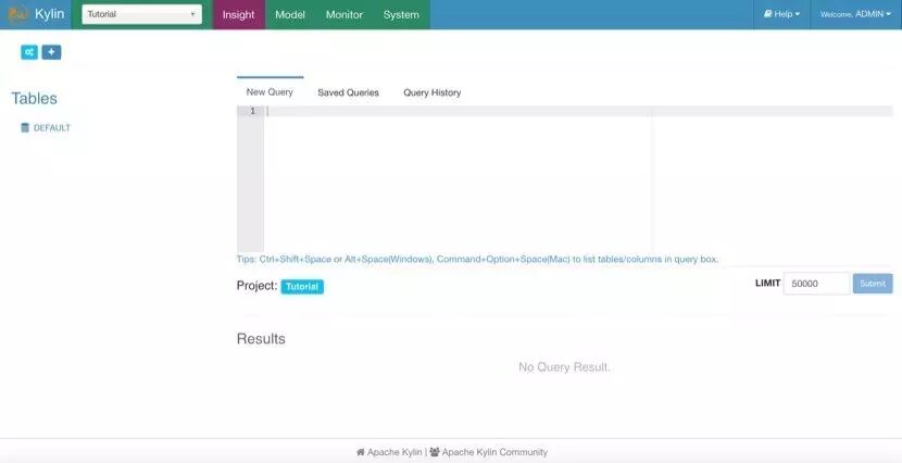 Kylin提供了一个原生的Web界面,在这里,用户可以方便的创建和设置Cube、管控Cube构建进度,并提供SQL查询和基本的结果可视化。