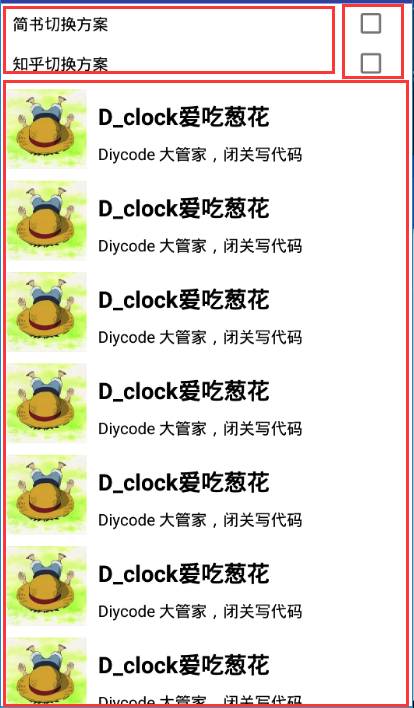 首先,先写一套UI界面出来,上方左边是两个 TextView,右边是两个 CheckBox,下方是一个 RecyclerView ,实现很简单,这里我不贴代码了。