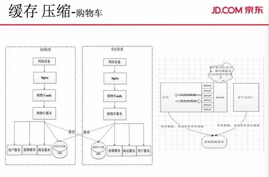 压测完之后得到容量,得到交易系统的购物车、结算页大概承受值,之后会进行一轮优化,包括对NoSQL缓存的优化。京东在2012年的时候自建CDN网络,Nginx层做了很多模块加Nginx+lua的改造。应用程序层也会做很多缓存,把数据存在Java虚拟器里面。数据层的缓存,主要有redis、 NoSQL的使用,另外会剥离出一些独立的数据存储。
