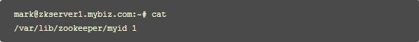 5. 创建一个 /var/lib/zookeeper/myid 文件。此文件的内容将只包含 zkserver1.mybiz.com 上的数字 1、zkserver2.mybiz.com 上的数字 2 和 zkserver3.mybiz.com 上的数字 3。清单 3 显示了来自 zkserver1.mybiz.com 的此文件的 cat 输出。